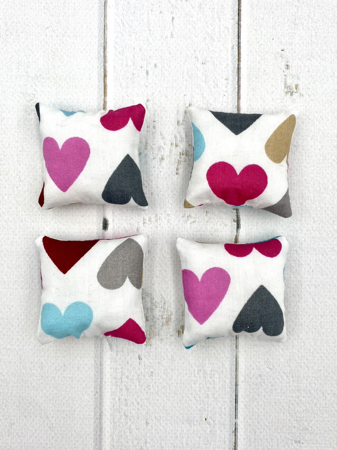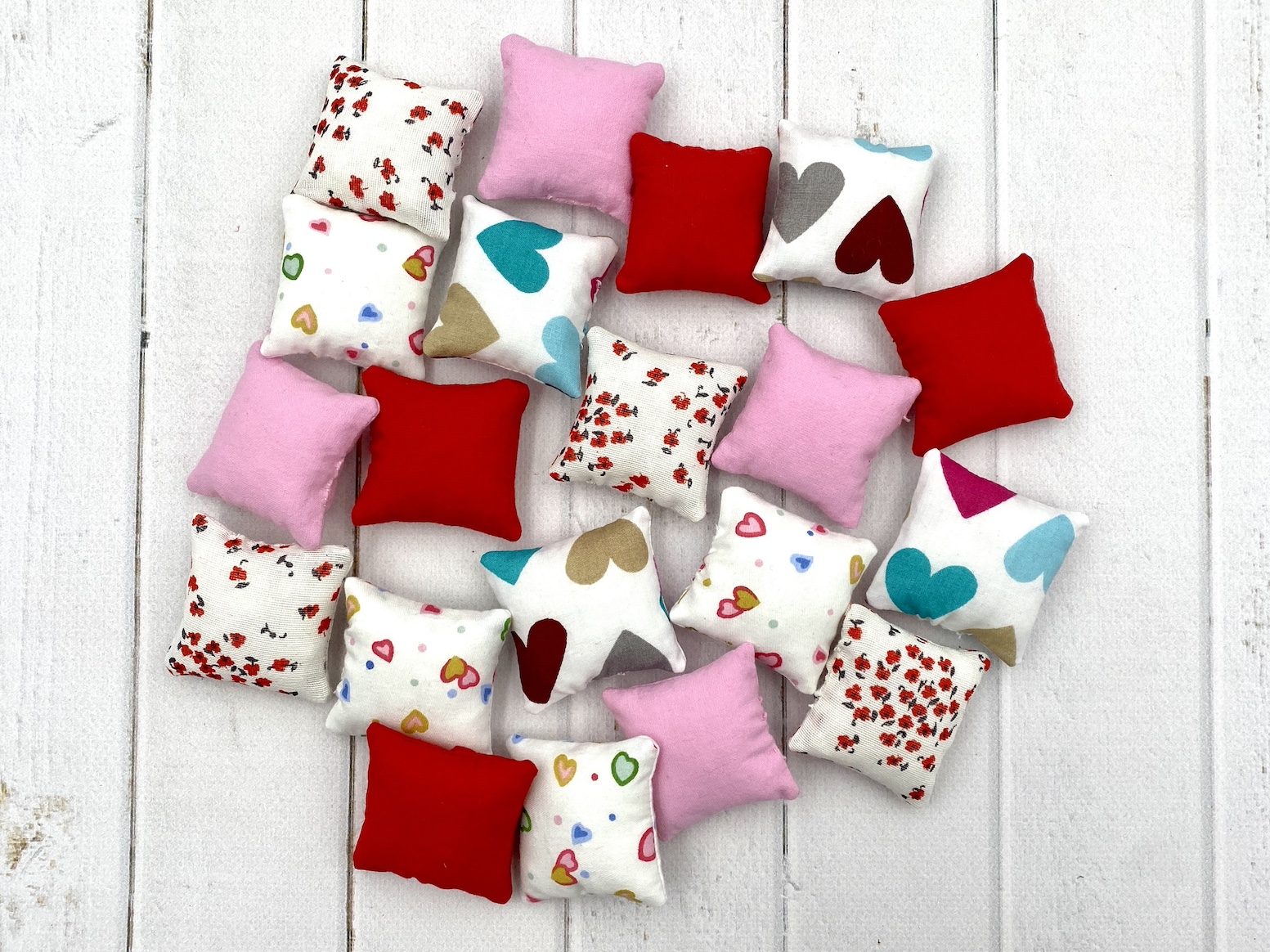 Zdjęcie ma charakter poglądowy – każda miniaturowa poduszka jest nieco inna, ponieważ jest wykonana z innego kawałka materiału.