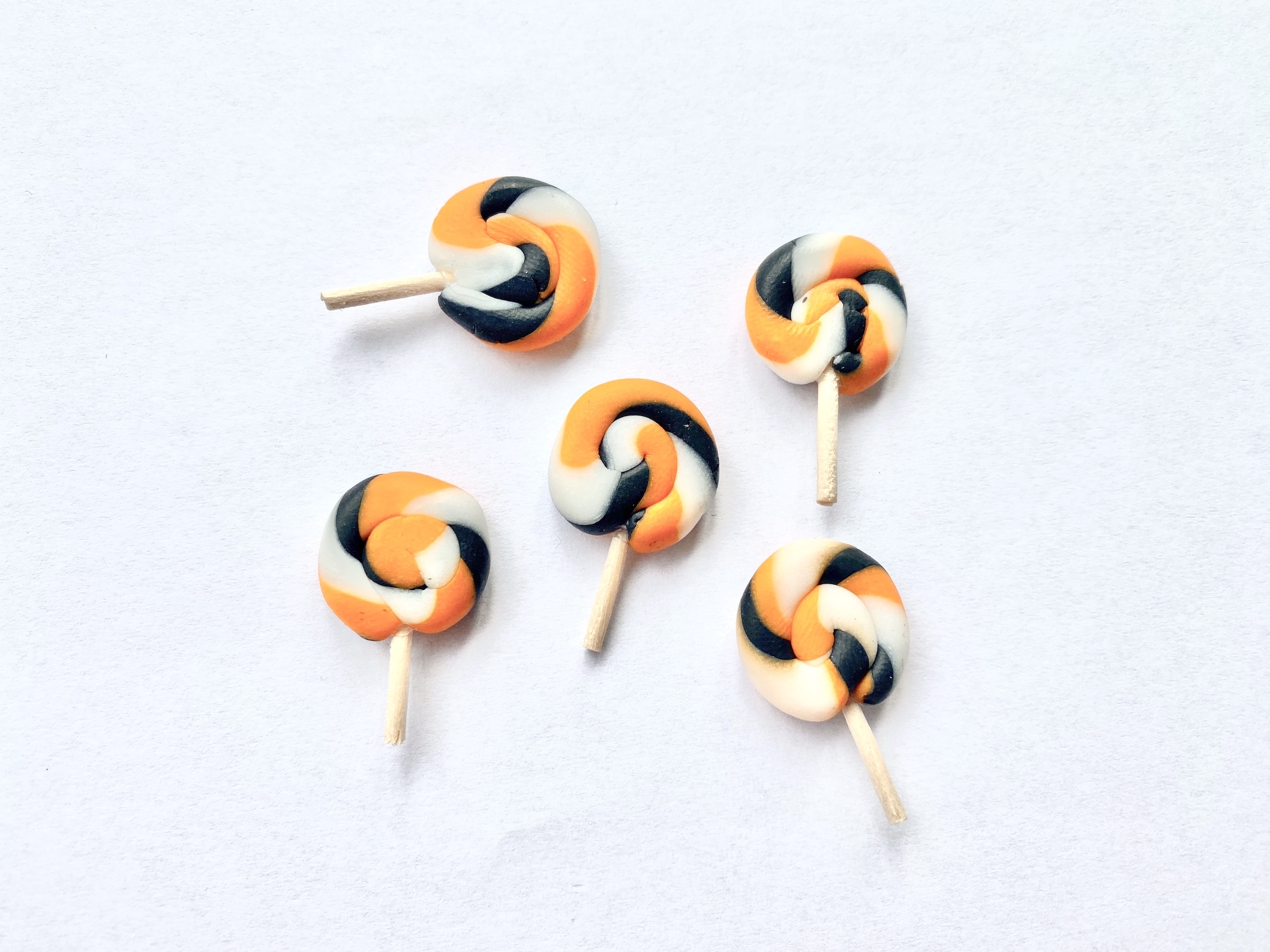 - 1 pomarańczowo-biało-czarny lizak