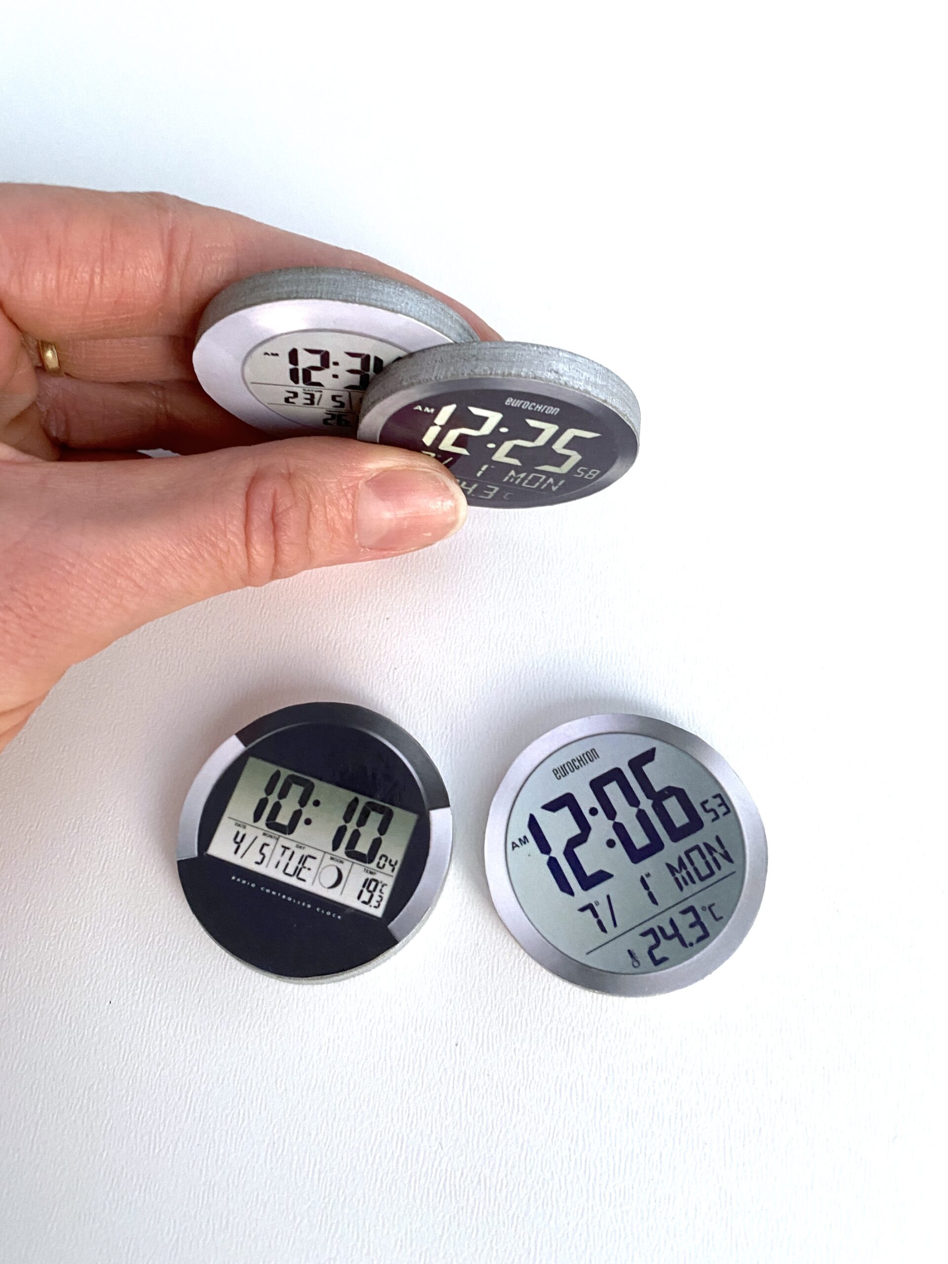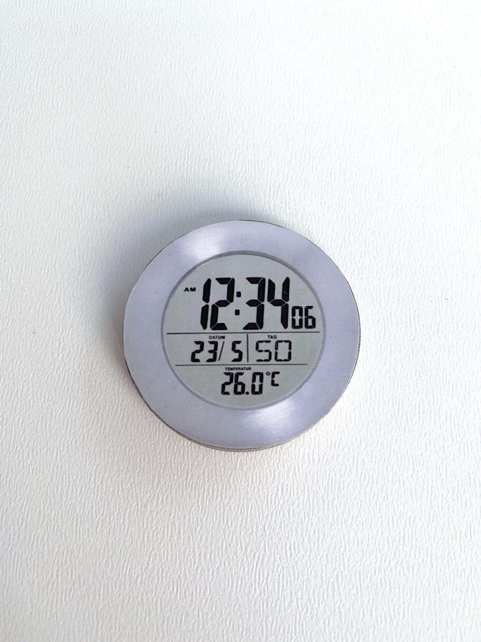 • zegar można zamocować na ścianie przy pomocy dwustronnego samoprzylepnego kółeczka dodanego do każdego zegara.