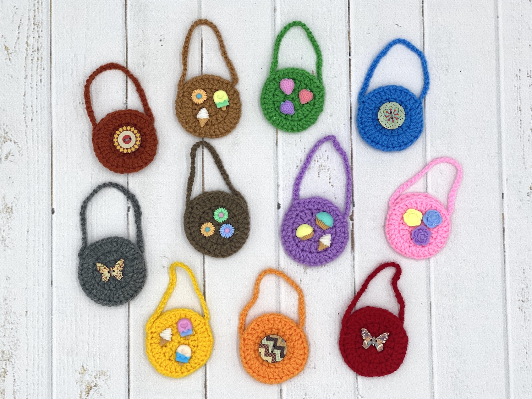 Personalizowana, ręcznie robiona na szydełku torebka dla lalek, skala 1:6. Do wyboru jest wiele kolorów, a także ozdoby wykonane ręcznie z masy termoutwardzalnej lub drewnianych guzików. Możesz napisać w notatkach, jakie dekoracje chcesz. Torebka jest otwierana, dzięki czemu można do niej coś włożyć – na przykład miniaturowy smartfon, książeczkę, przekąski itp. Idealna dla modowych lalek, takich jak Barbie, Steffi, Monster High, Blythe, Rainbow High, Momoko, Pullip, Azone, Licca, Jenny, vintage Sindy i wielu innych lalek.