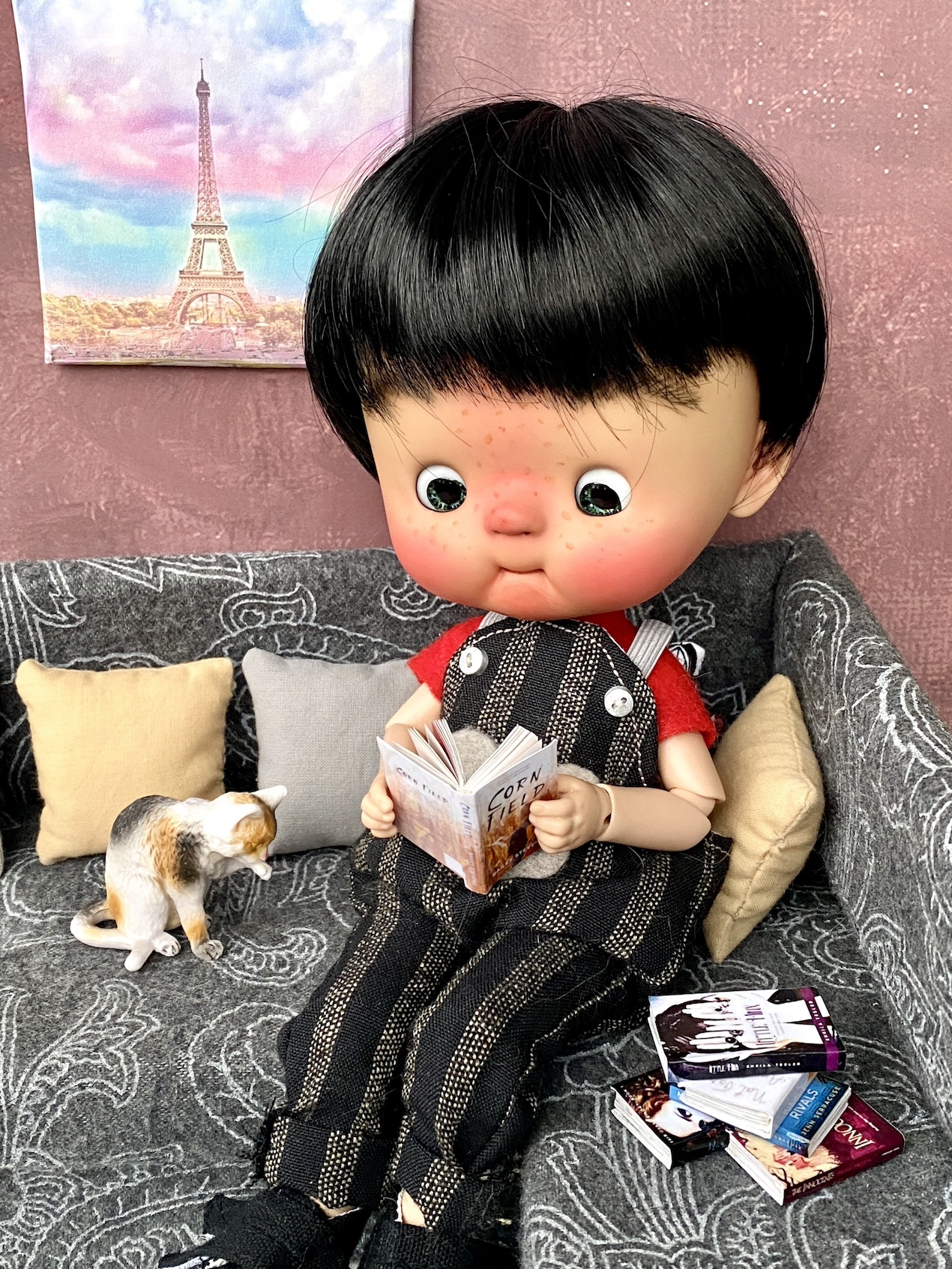 Ręcznie robiony zestaw 3 obyczajowych książek do domku dla lalek i dioramy w skali 1:6. Nadają się dla lalek takich jak Barbie, Blythe, Pullip, Monster High, LOL OMG i wiele innych lalek. Są 2 wersje do wyboru – otwierane i nieotwierane.